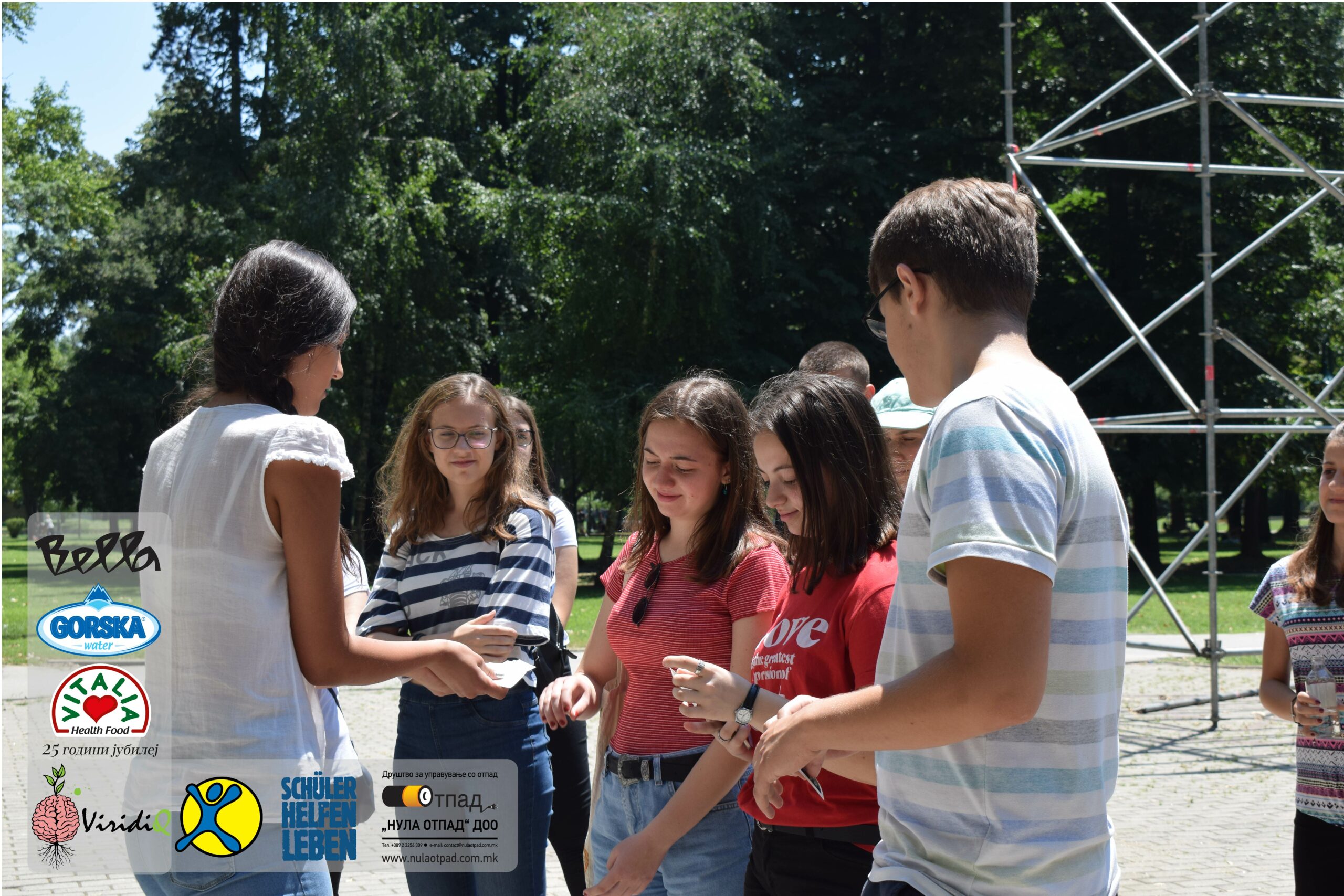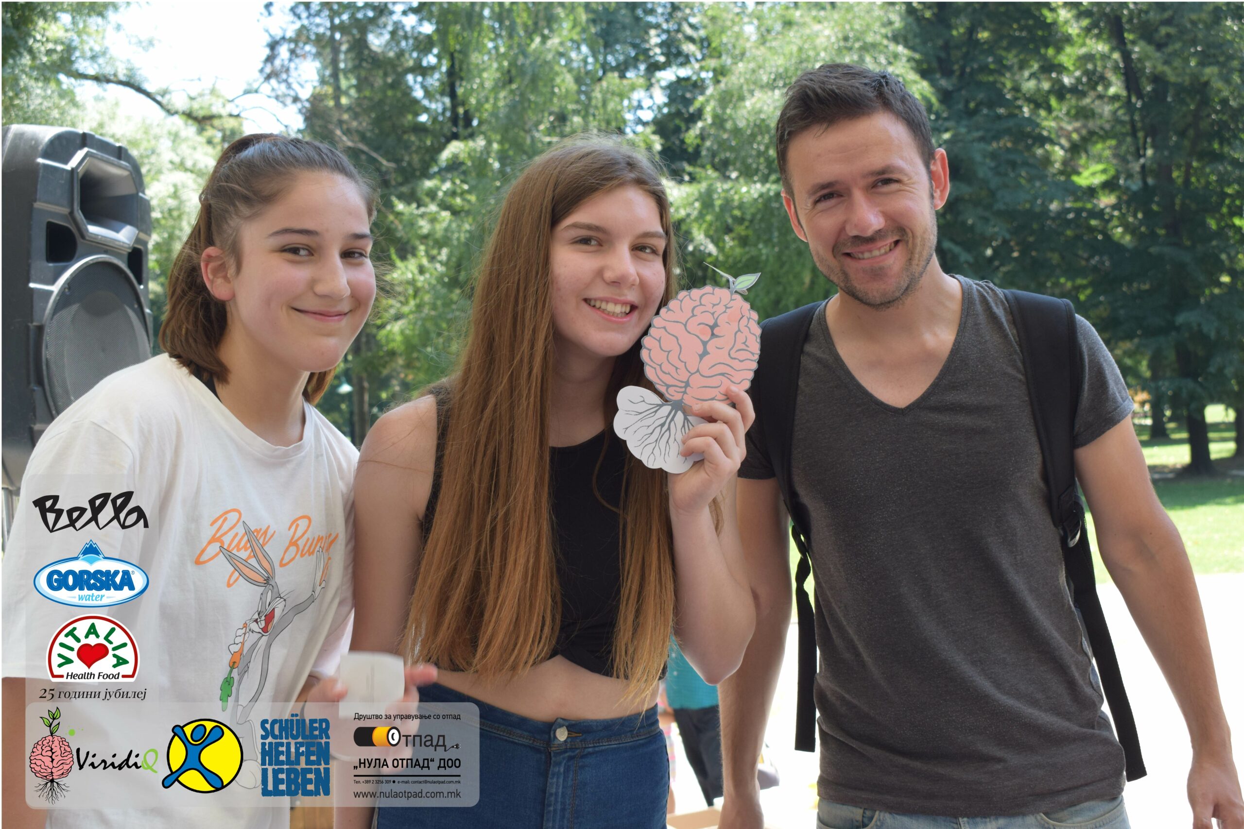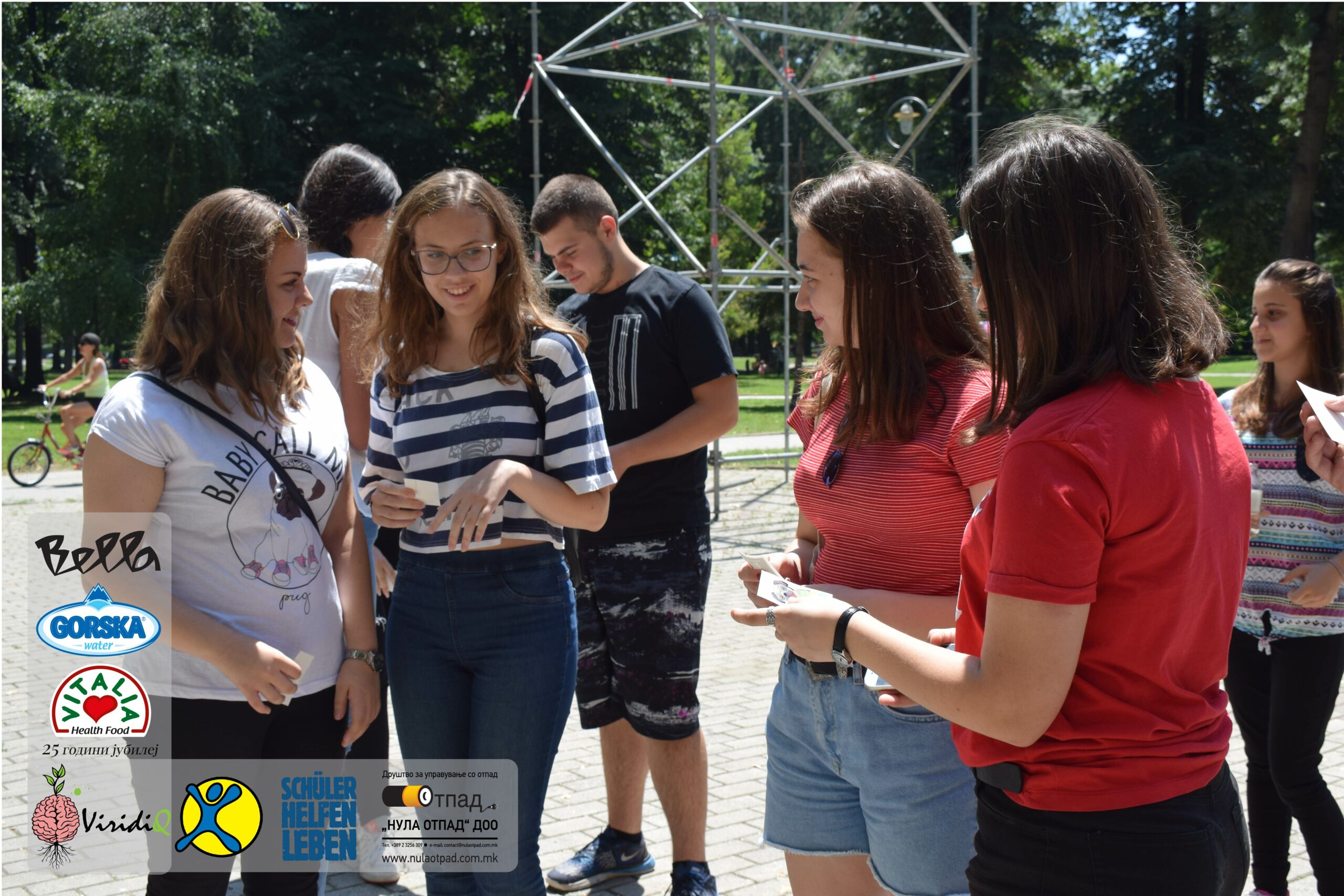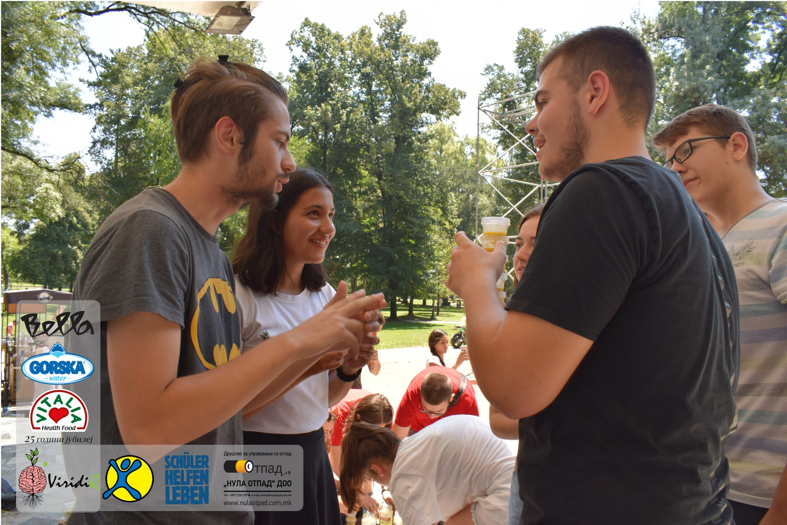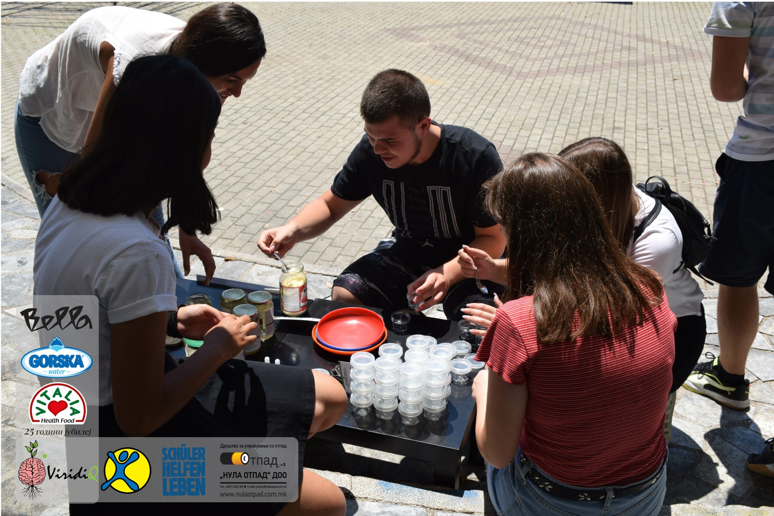 Младите можат им се заблагодарува и на Нула Отпад ДОО Скопје, Vitalia Healthy food, GORSKA VODA, Bella и Град Скопје за поддршката која ја дадоа за реализација на овој настан.