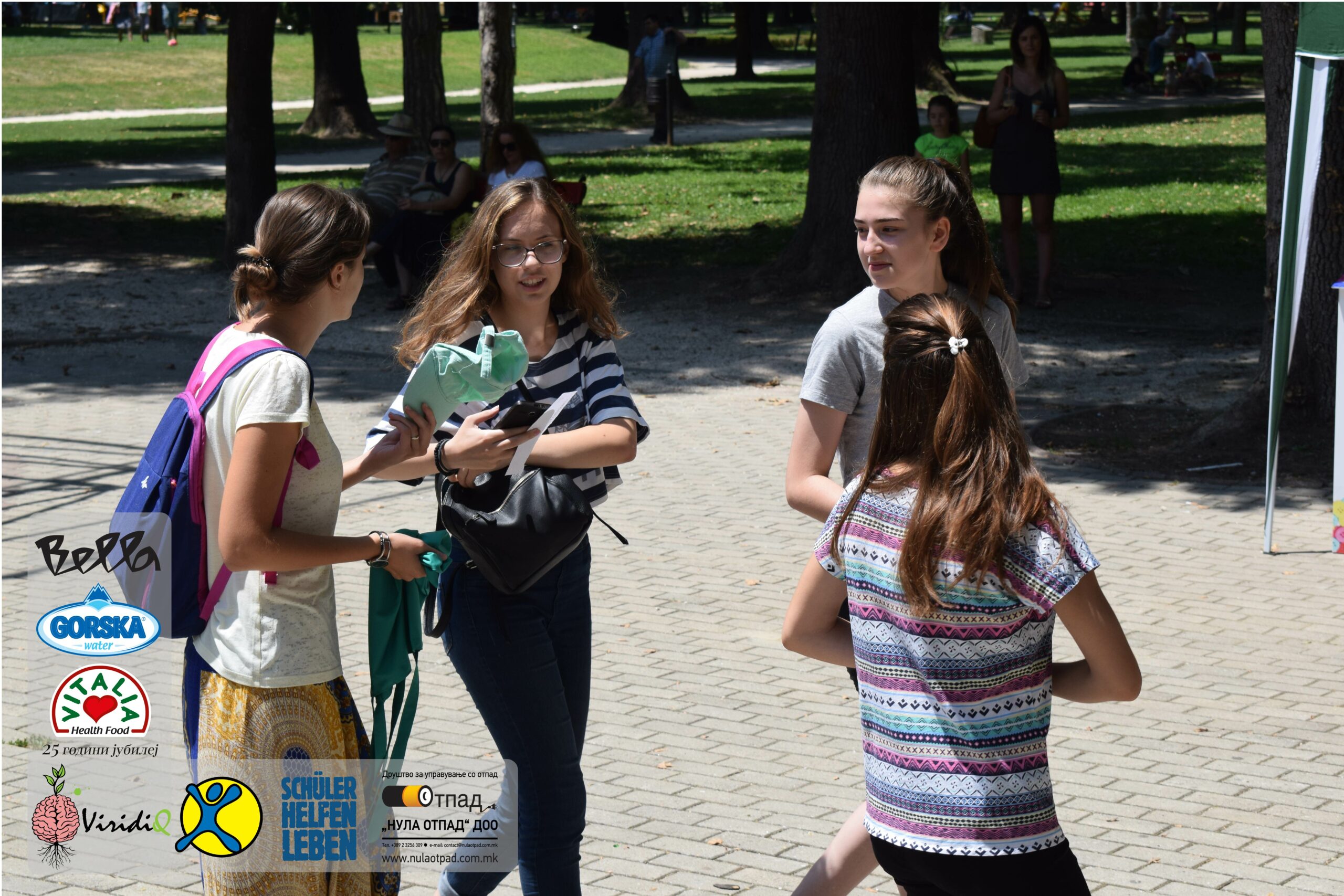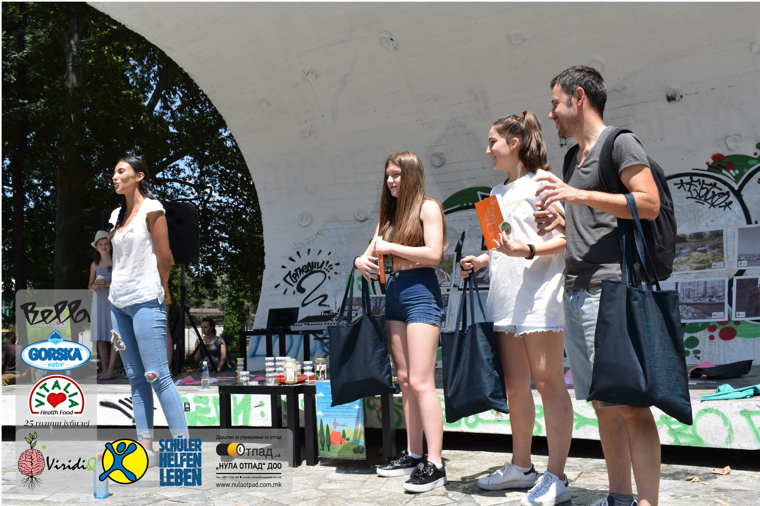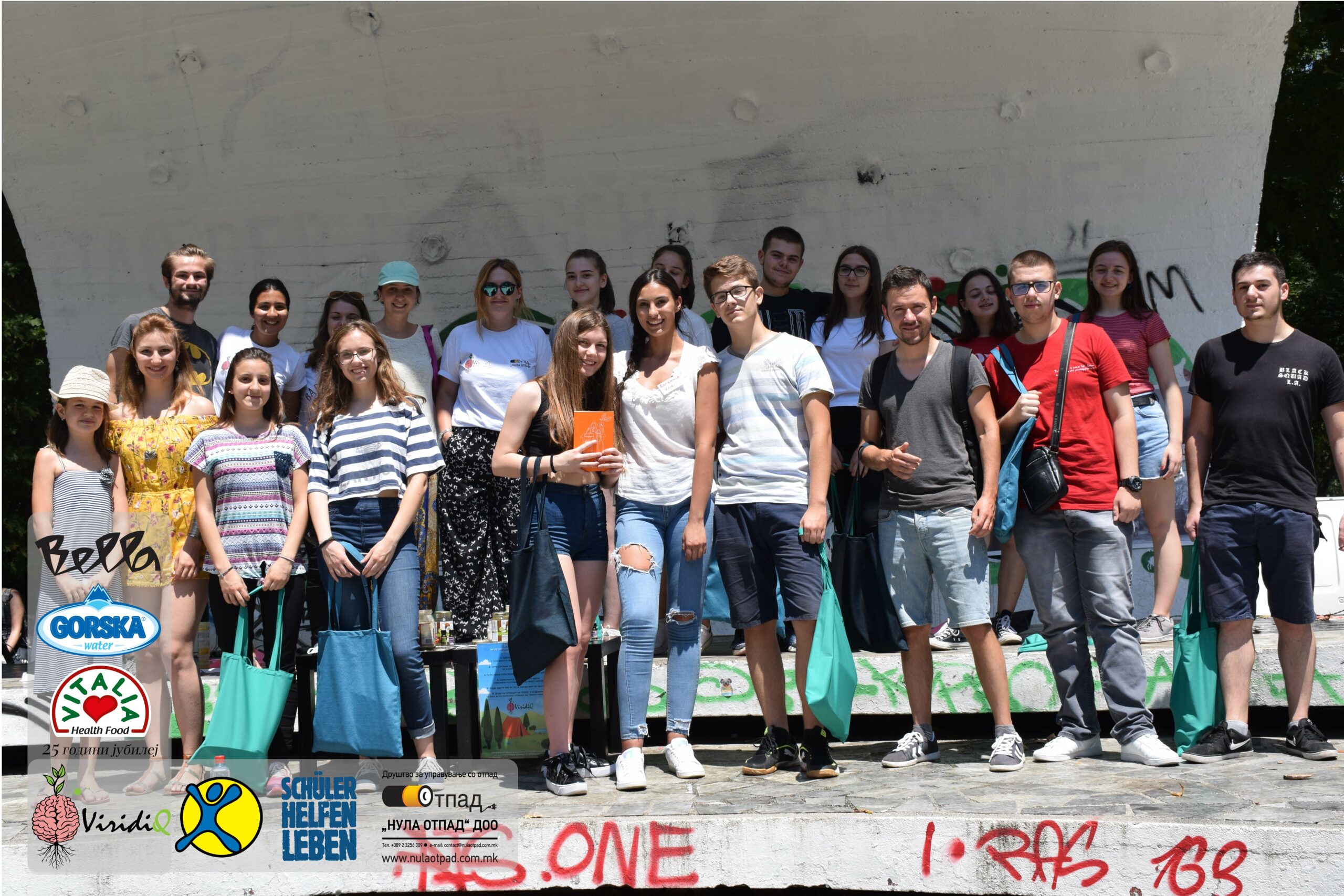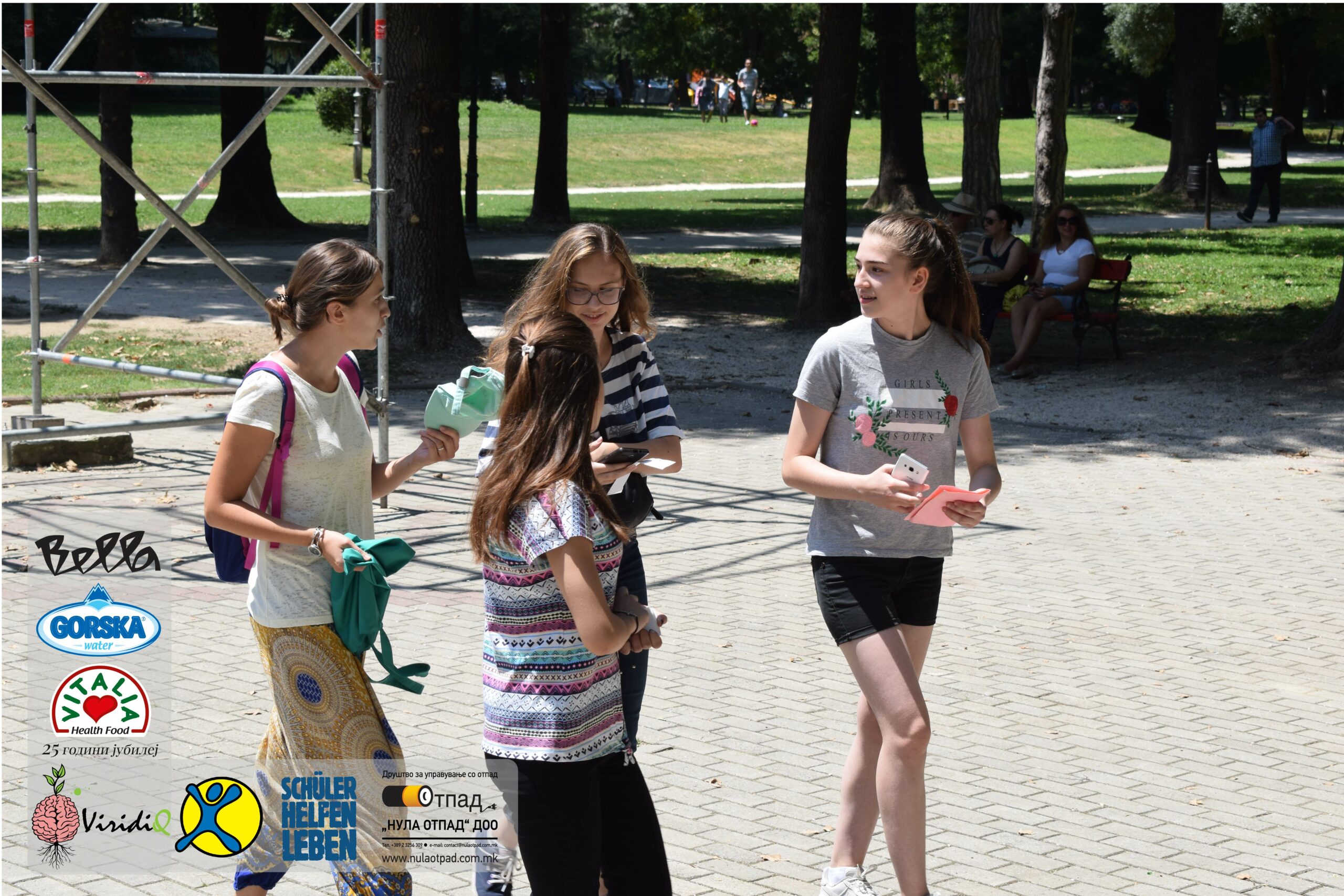 Младите можат им се заблагодарува и на Нула Отпад ДОО Скопје, Vitalia Healthy food, GORSKA VODA, Bella и Град Скопје за поддршката која ја дадоа за реализација на овој настан.