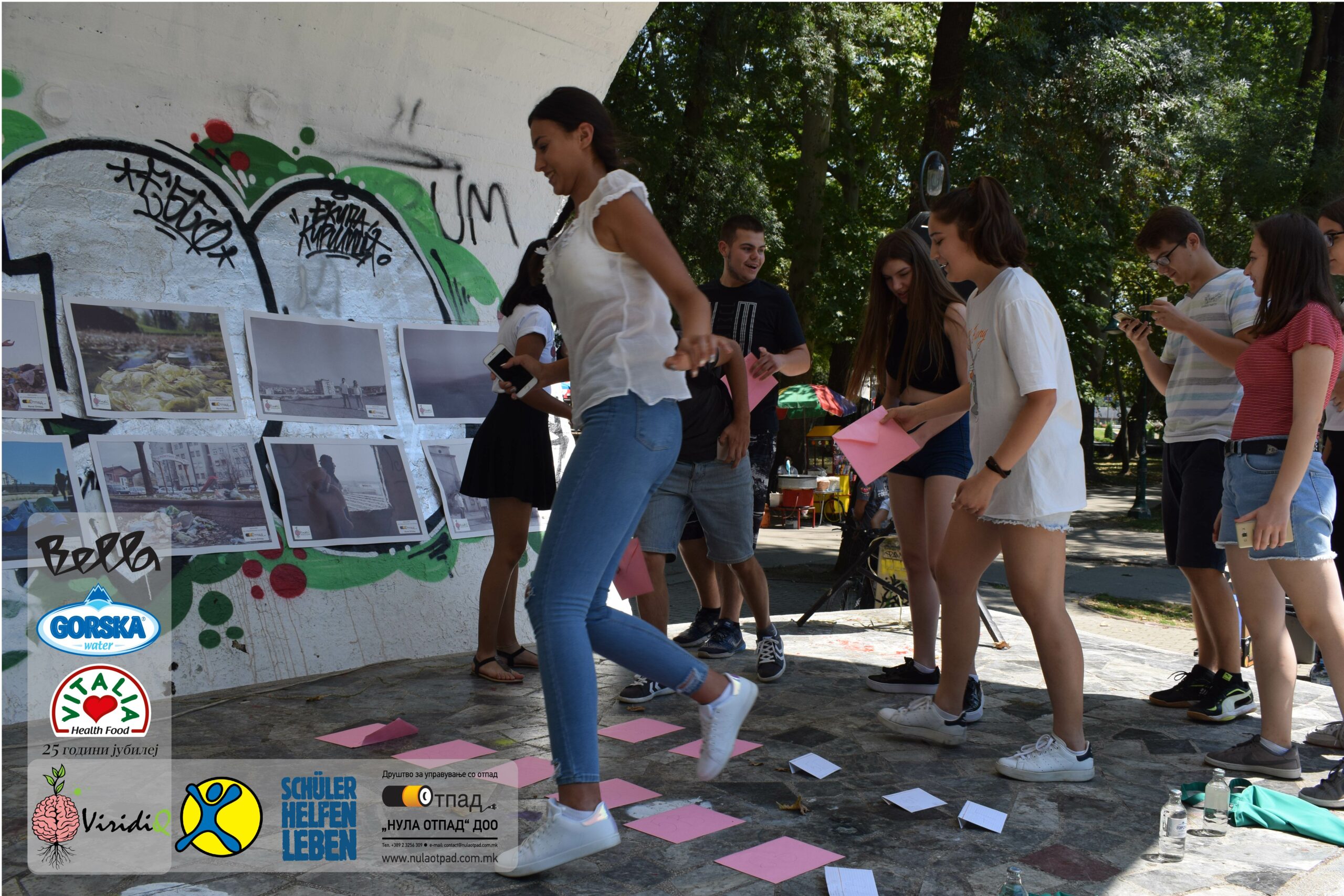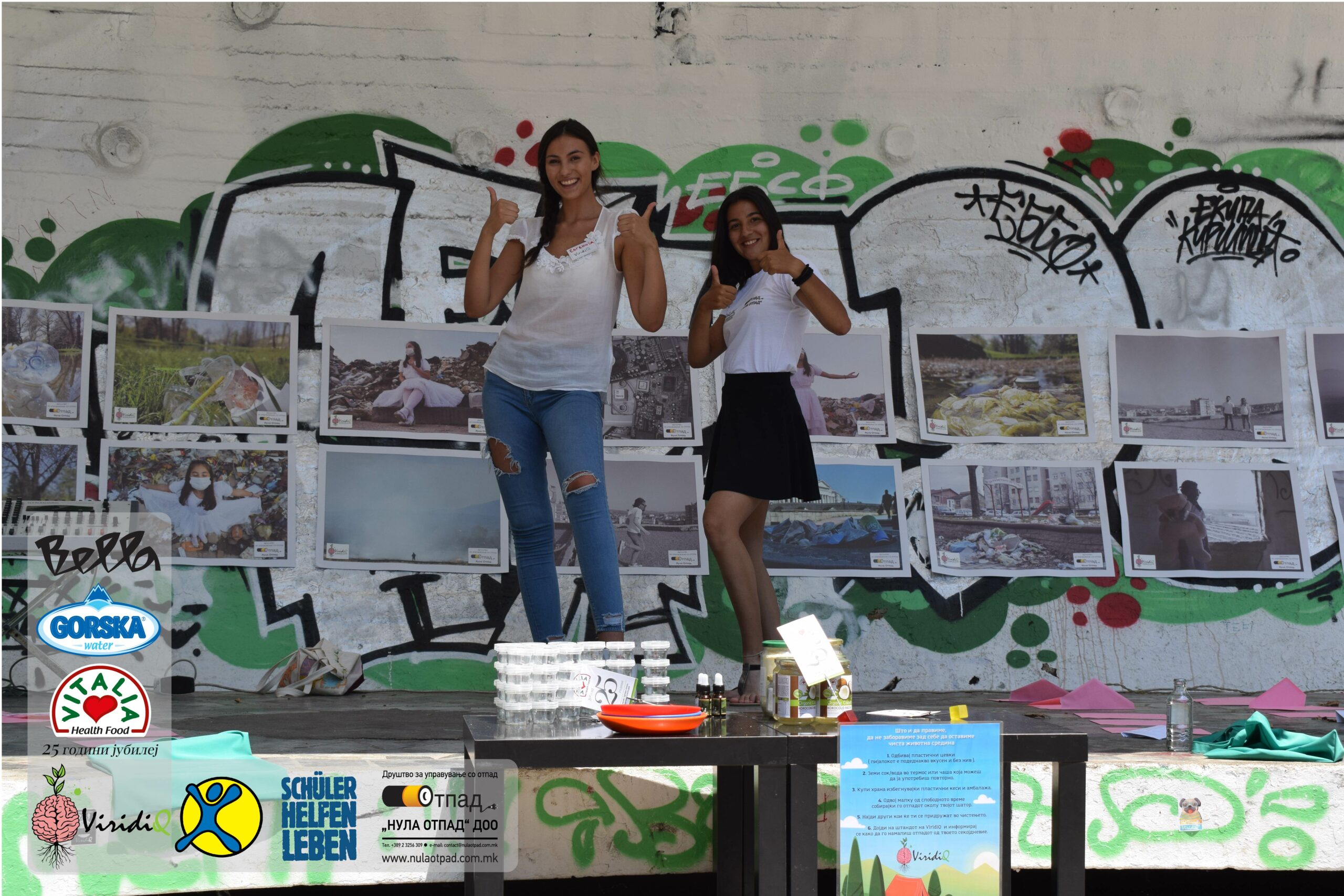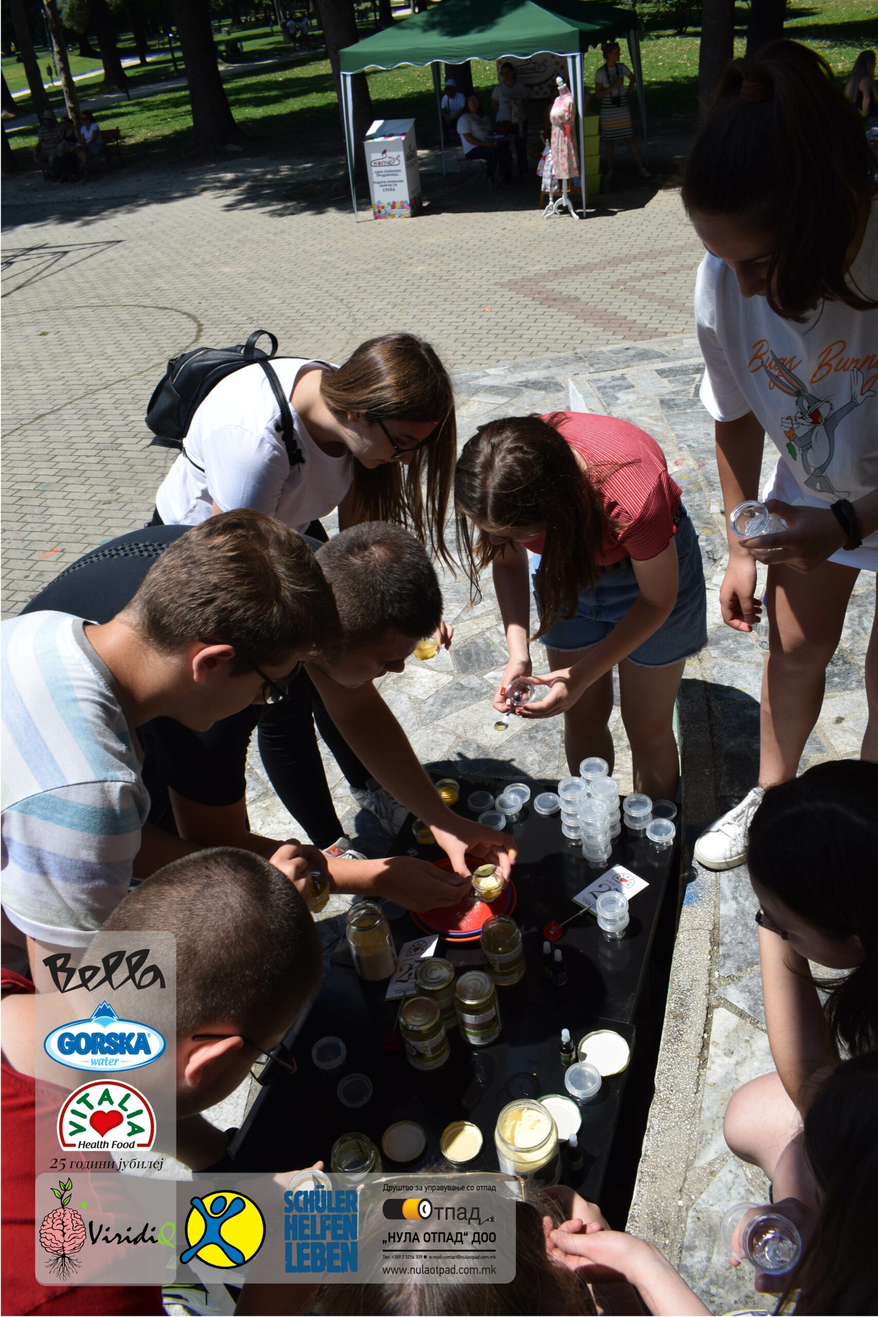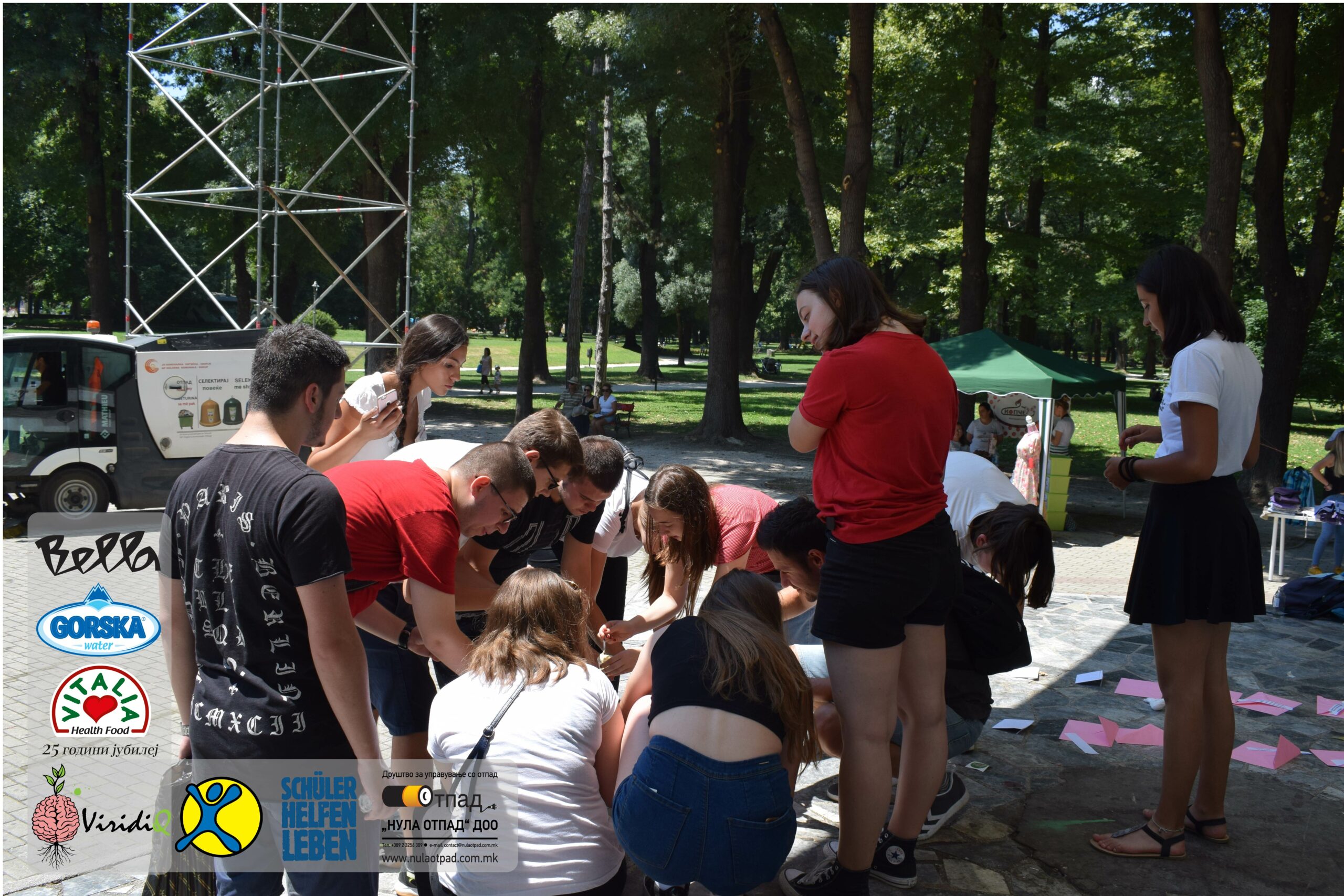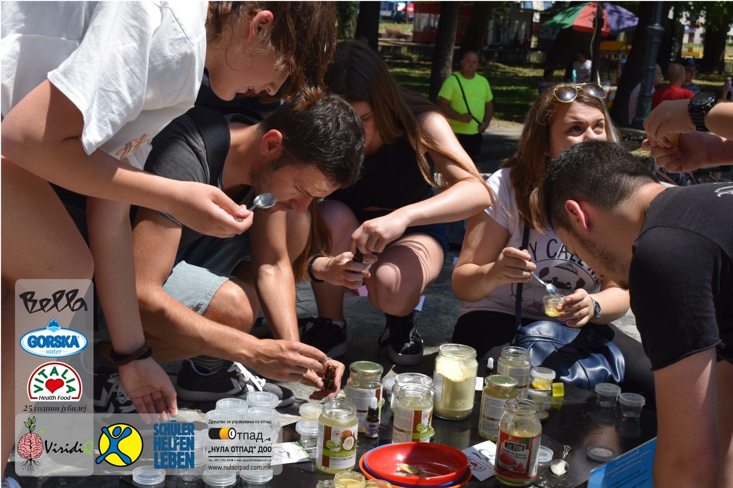 Младите можат им се заблагодарува и на Нула Отпад ДОО Скопје, Vitalia Healthy food, GORSKA VODA, Bella и Град Скопје за поддршката која ја дадоа за реализација на овој настан.