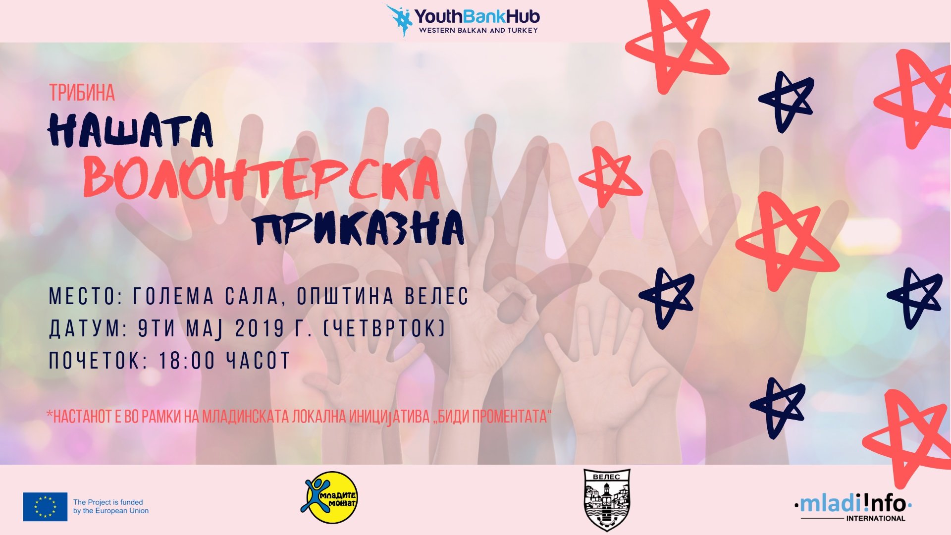 *Трибината е во рамки на младинската локална иницијатива за застапување која ја имплементира тим од 9 млади активисти (Martin, Кристина, Анамарија, Snezana, Aleksandra, Simona, Филип, Viktorija, и Tina) во општина Велес, како дел од програмата за локален активизам од проектот Младински локални иницијативи.