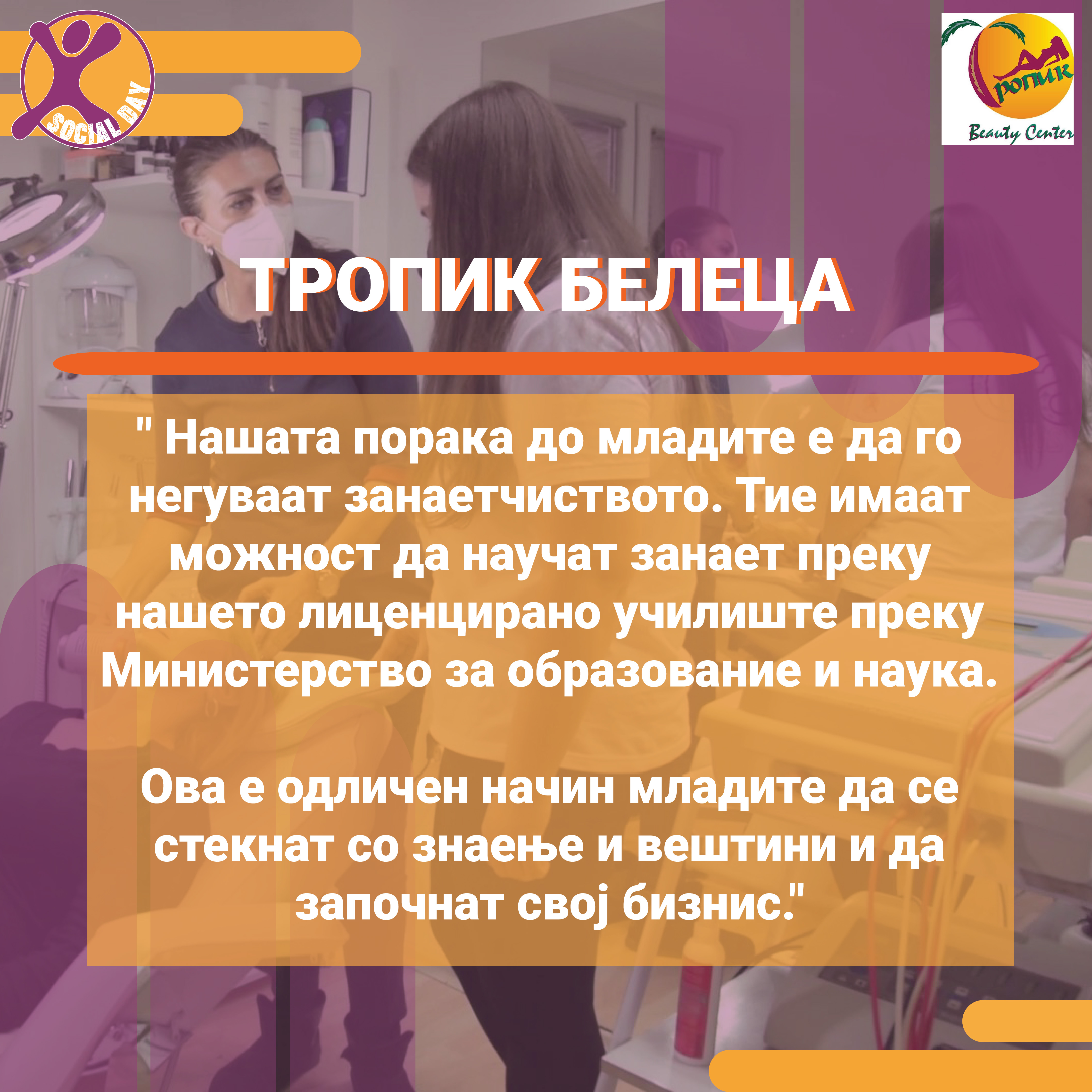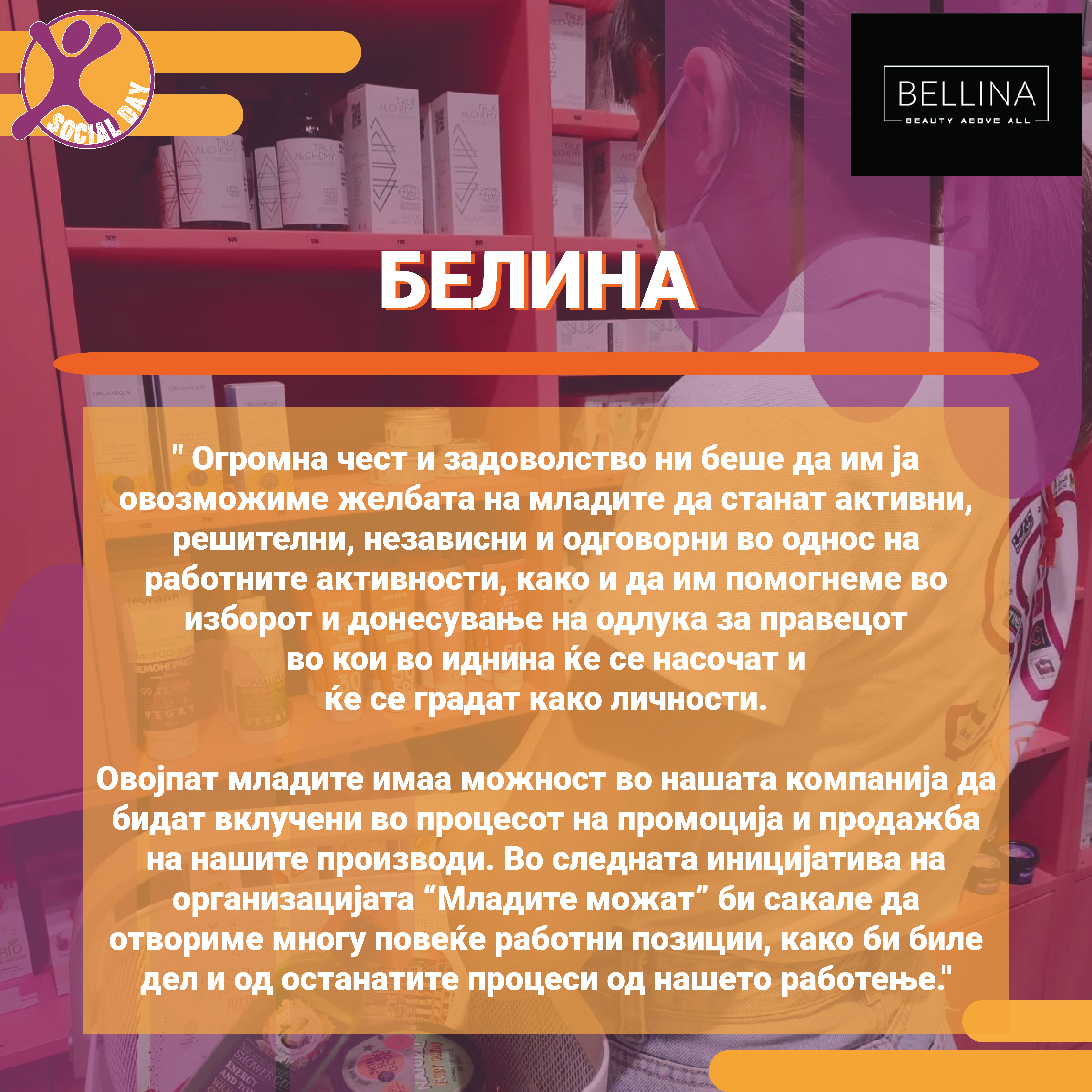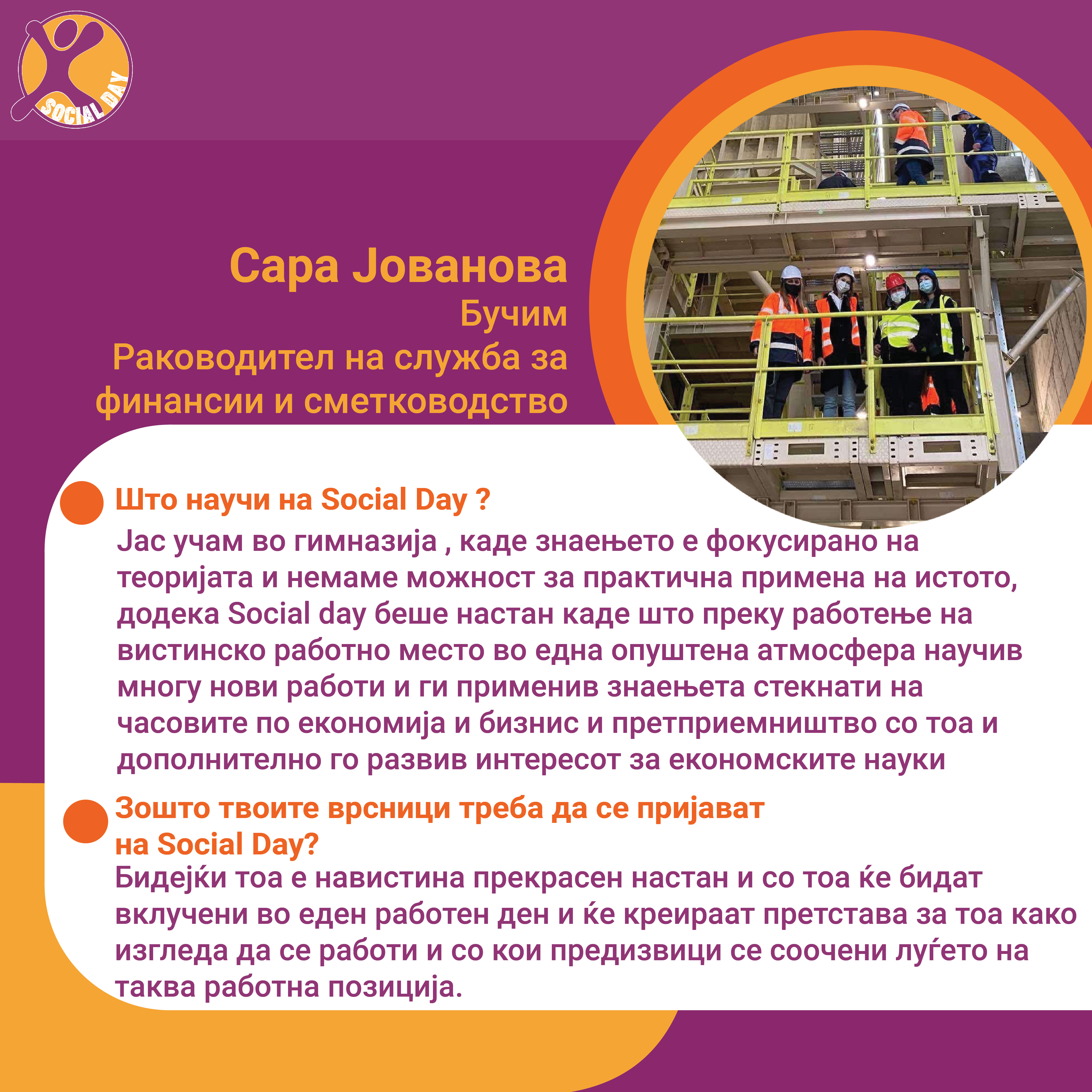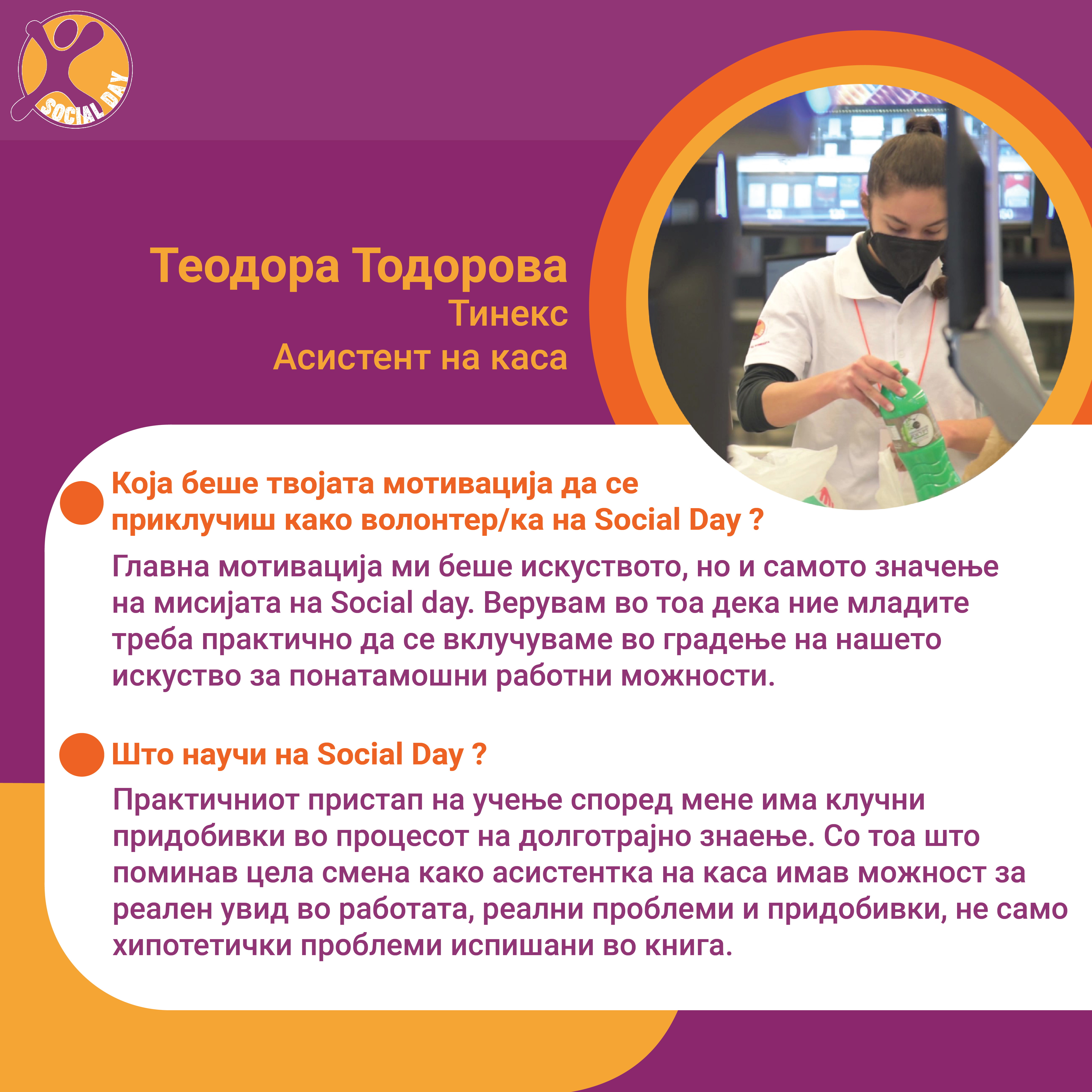 Токму ова се главните резултати од првиот SOCIAL DAY во Северна Македонија, спроведен од Здружение на граѓани Младите можат на 10ти ноември 2021г. На овој ден 30тина домашни компании и организации земаа учество и обезбедија позиции за над 80 средношколци, меѓу кои: Центар за Младински Активизам Крик, Ултра, Фондација Фридрих Еберт, кафуле СКУП, Македонски центар за меѓународна соработка, Кодит Солушн, Приватна агенција ДЕКРА , ИТ Лабс, Фондација Конрад Аденауер, козметичко студио Тропик Белеца, ЛЕАД Скопје, Бизнис академија Смилевски, ЕУРОНИКЛ – Кавадарци, ПЗУ Аптека ДНА АННИ ФАРМ, Национален Младински Совет на Македонија, РЕСОРТ МАВРОВО, Ултранет, Микел, Тинекс маркети, Рудник Бучим Радовиш